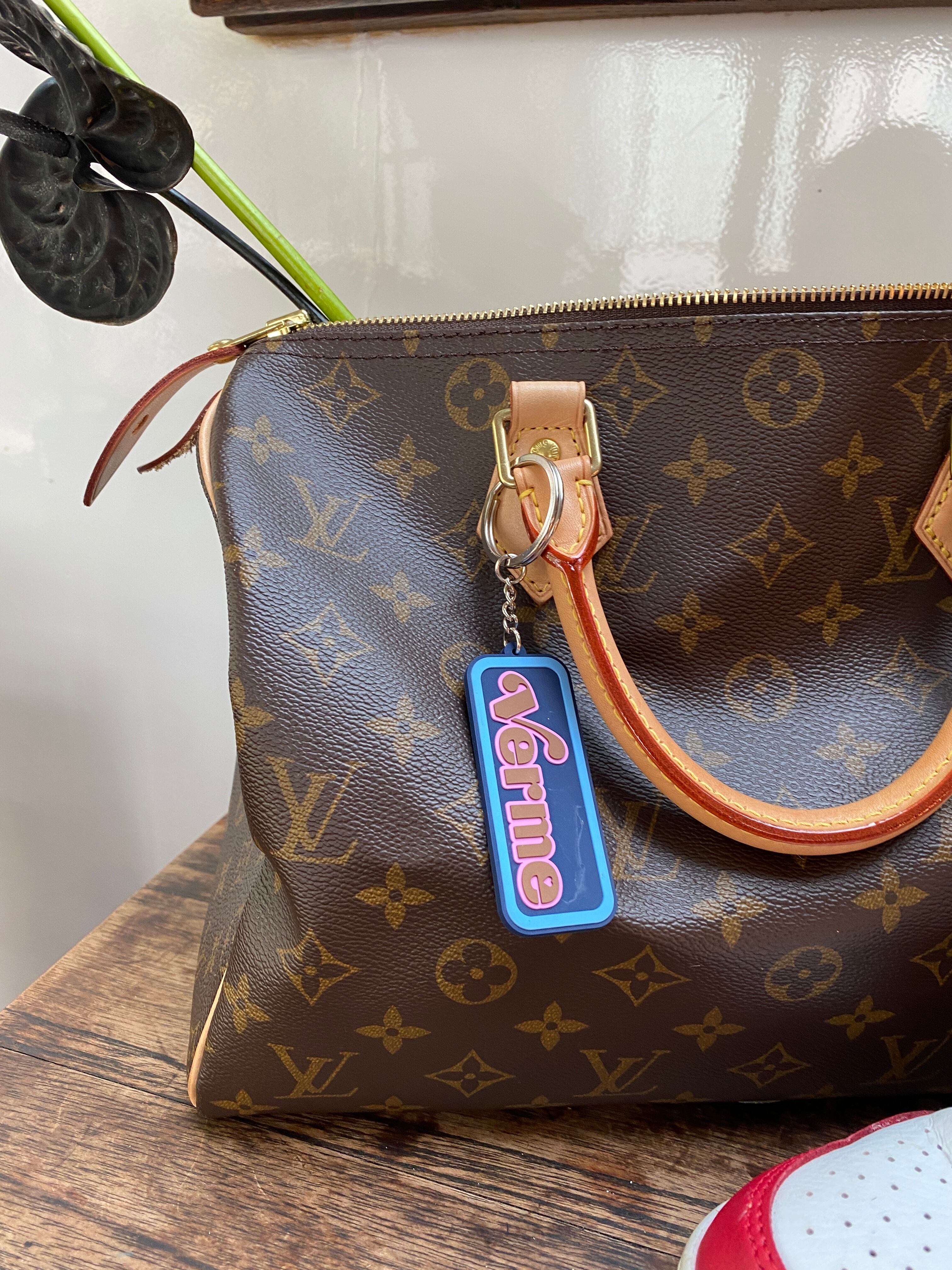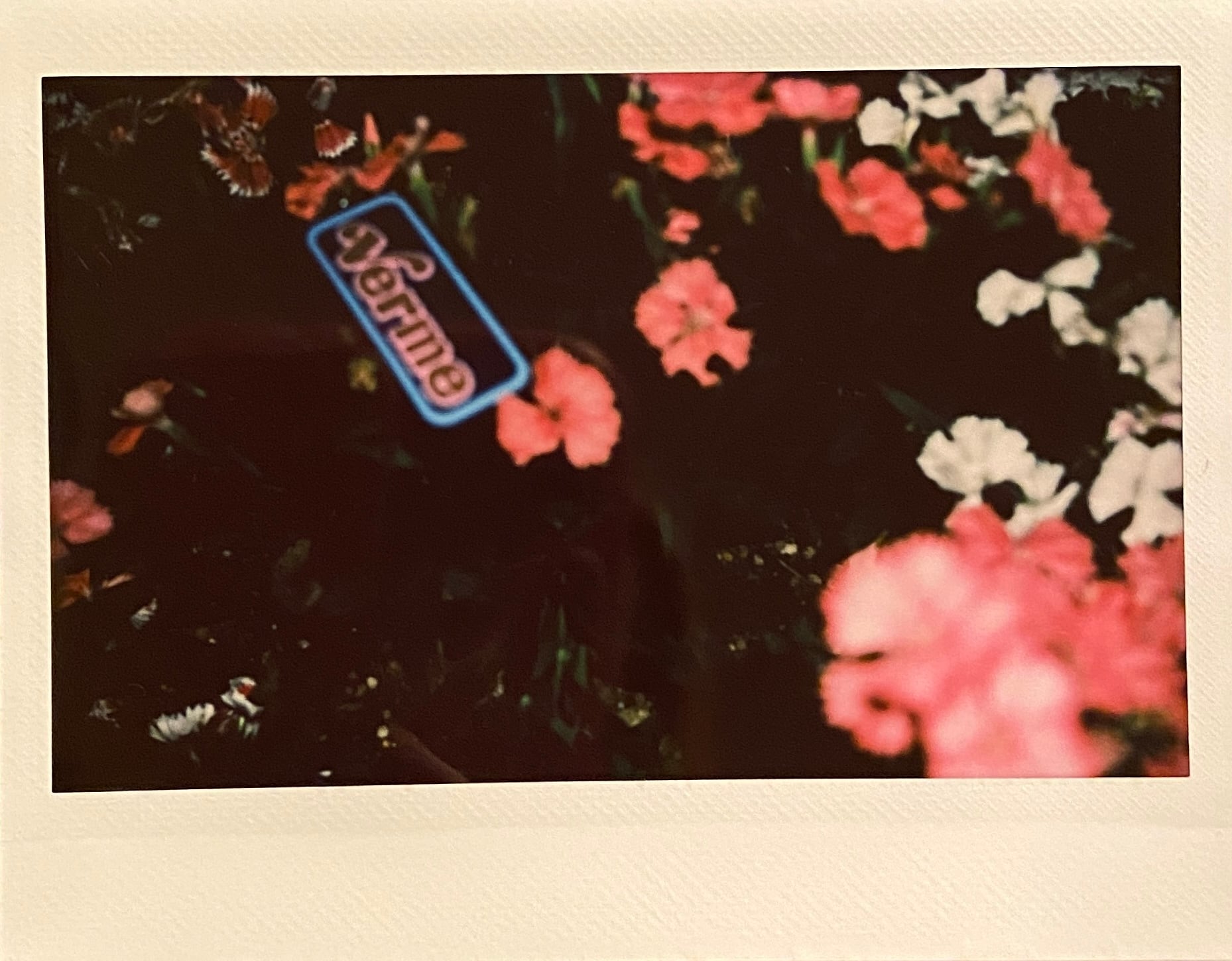 キーカラーとなるブラウン×ピンクでvermeロゴを、ネイビーと水色でポップなカラーリングを表現。